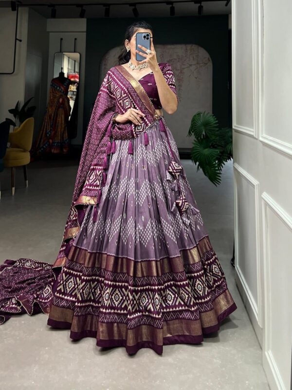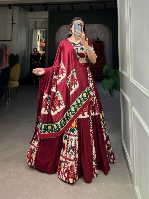 This is a traditional ethnic lehenga choli set with a very rich and cultural appeal. Here’s a full description: